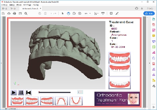 Adobe社によって開発された3D情報を含んだPDFファイルで、3次元の3DモデルをPDF上で対話的に操作することができます。