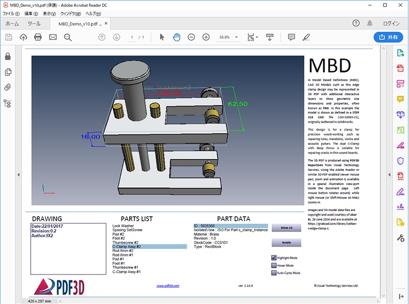 80種以上のフォーマット(IGESやSTEP,VRMLなど)の3D形状ファイルから3D PDFファイルを作成するデータ変換ツールです。
