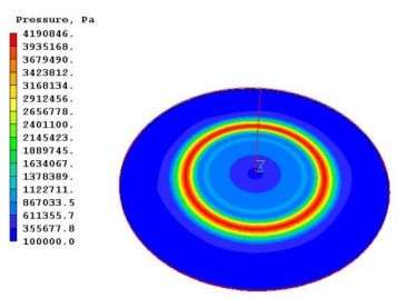 図 5: 爆薬の爆発後の衝撃波を示す圧力コンター図