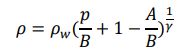 水中の衝撃伝播をモデル化するには、水の密度を圧力、温度、塩分に関連付ける状態方程式が必要です。(1) 圧力 p のみの関数として密度のより的確な関係は、Taitの式 (2) と呼ばれます。
