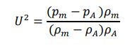 衝撃波の狭い領域全体に質量と運動量の保存を適用すると、圧力と密度から衝撃速度 U m/s が得られます (3)。