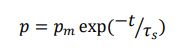 衝撃通過後の圧力の指数関数的減衰は次の式で与えられます。