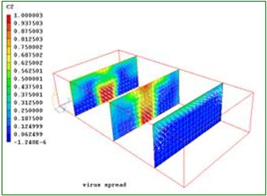 図2. シミュレーションの初期段階での新鮮な空気の濃度