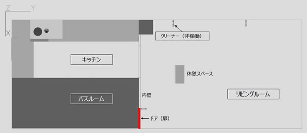 バスルームを含む他の隣接する部屋は、CFDモデルには影響しないので含みません。