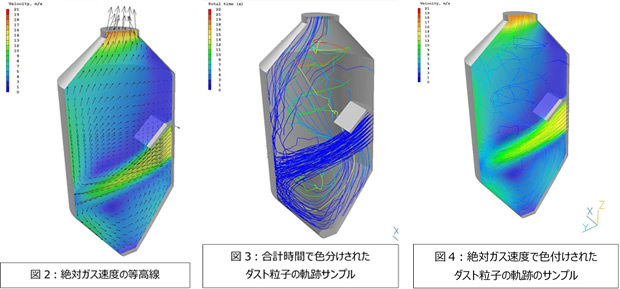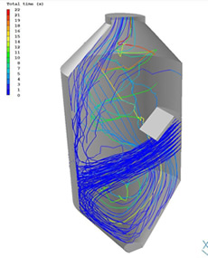 3.粒子状物質の体積分率は、通常質量2%未満であるため、流れ場を通して分散粒子のこのサンプルを追跡するために、“オイラー-ラグランジュ法(GENTRA)”が使用されました。
