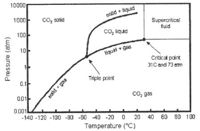 パイプラインの条件は表1に指定されており、図1からわかるように、温度(305K)と圧力(158.5barゲージ)がそれぞれ臨界点値304.1Kと73barを超えているため、CO2は超臨界流体として存在します。