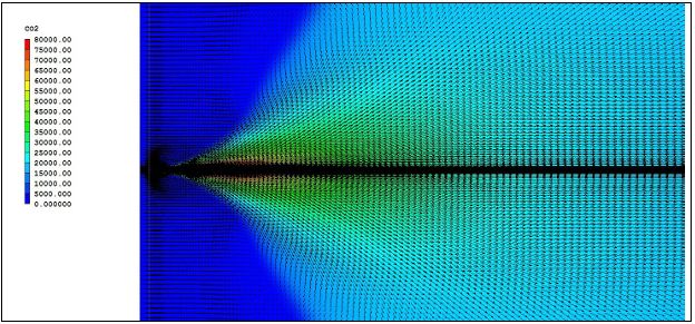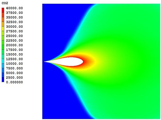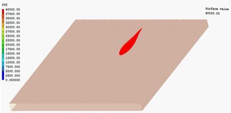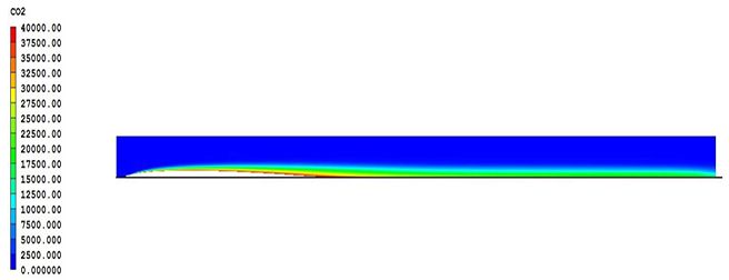 図5 側面からみたCO2濃度分布(最大40000ppm)