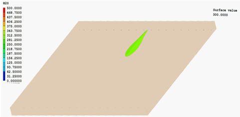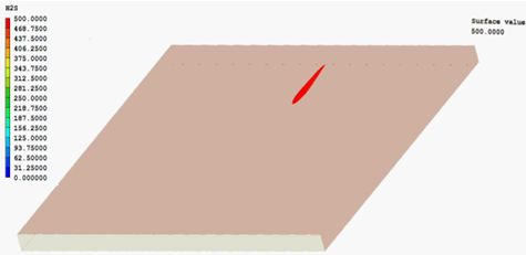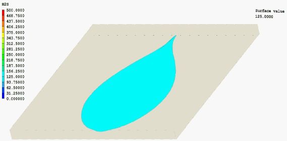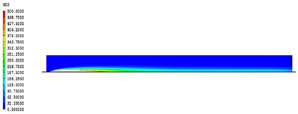 図8 側面からみたH2S濃度分布(最大500ppm)