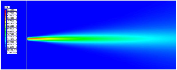 計算モデルは、2km をカバーする非横断方向 (x)、100m をカバーする高さ方向 (z) のセルに 162 セルを含む 36 均一メッシュ、および 2km をカバーする流れ方向 (y) に沿った 162 セルを使用します。このデモンストレーション ケースの目的は、CO2 拡散を予測する PHOENICS の機能を示すことだけです。遠方フィールドでより低い CO2 および H2S の測定値を予測するには、より大きな解析領域を使用する必要があります。実際の破壊源は、風の流入境界の下流 30m にあります。