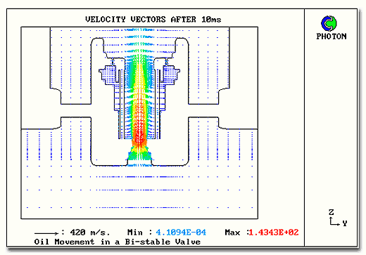 エアバスA340着陸装置内双方向性バルブ内解析(速度ベクトル図)