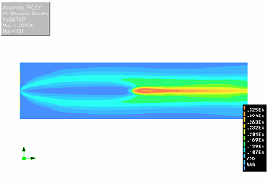 概要 :固体推進燃料ロケットは燃料燃焼後、排気を排出する時、Plumesが形成される。このPlumesの大量の酸化Aluminiumと炭素が含まれている。この混合物から高い輻射性を持ち、ロケットの表面へ輻射熱を伝達している。PHOENICSはNozzeleから噴射した流れ計算に使用された。 ※モータ表面の定性的輻射は、20k/Wm2で発生することがわかった。