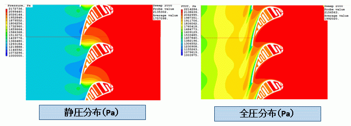・主流の入口-出口の圧力は、流線解析の結果と良く一致しており良好な結果となっている。 |