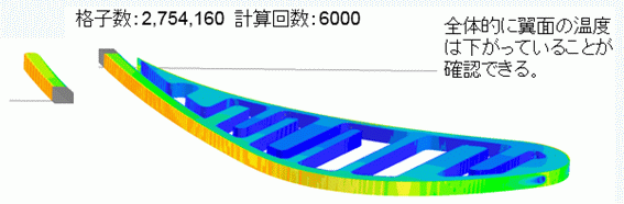 その結果、全体的に翼面の温度が下がっていることが確認できた。