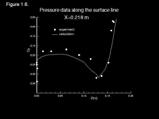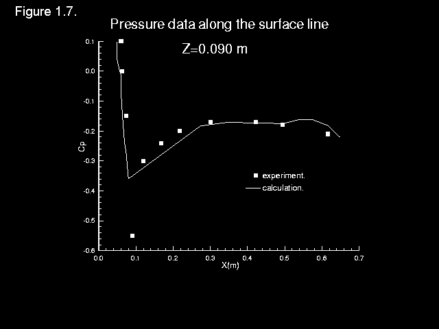 | 実験との比較3(中心断面上側表面の圧力係数) |