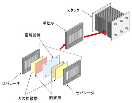 通常、燃料電池はスタックを用いて、そのセル内は平行に流動します。 また電流は供給と通過が相互に行われ、反応物と生成物の経路が形成されます。