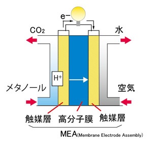 メタノールを燃料として直接電極で酸化する燃料電池は70年代に盛んに研究が行われたが、電極のメタノール酸化活性が低く性能が上がらないことと原油安により研究は中断されていた。しかし、最近になって環境問題が重要視され、燃料電池の開発が本格的に促進されるようになった。また、固体高分子電解質膜の開発により再び直接メタノール型燃料電池が見直されるようになった。