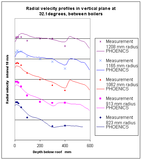 Comparison of radical velocity in place between boilers