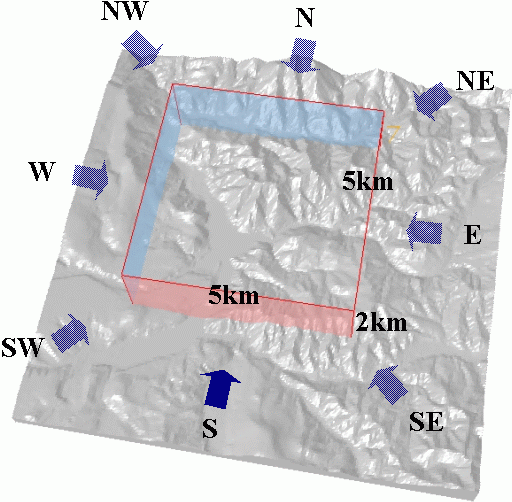 目的 気象予測値・積雪構造などから、対象地点の吹きだまり・削剥量・積雪のせん断強度分布などを計算し、雪崩発生危険度の予測をする。