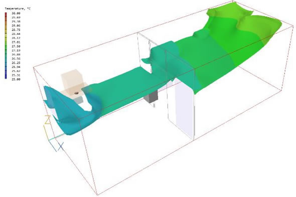バスルームを含む他の隣接する部屋は、CFDモデルには影響しないので含みません。