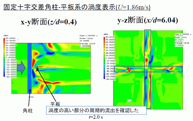 背景 ・流れによるクロス・フロー振動 渦励振:例)カルマン渦励振不安定振動: 例)ギャロッピング カルマン渦流出周波数と系の固有振動数が一致 ⇒大きな振動の発生