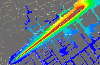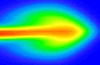 空間内へのガスの噴出 (5秒間、500step、濃度分布図)