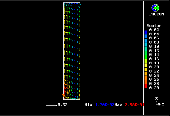 | 1.HILLS BUBBLE COLUMN: 水の速度ベクトル図 |