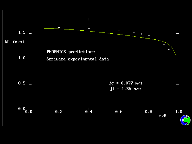 3. LAHEY PIPE UPFLOW: z/d=35における液体の軸方向速度分布
