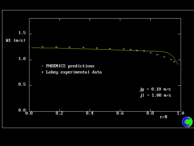 3. Lahey pipe flow:z/d=35における液体の軸方向速度分布.