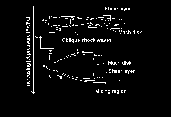 | ・報告された結果は完全に発達した超音速自由噴流流れに対するものである |