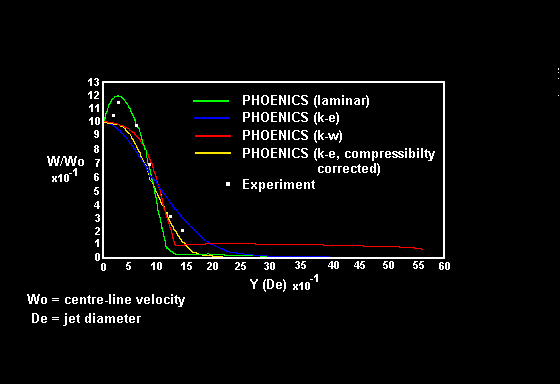 - 組み込みの対流項の係数と標準K-εモデルの修正は、より下流まで精度良く予測することを支援する