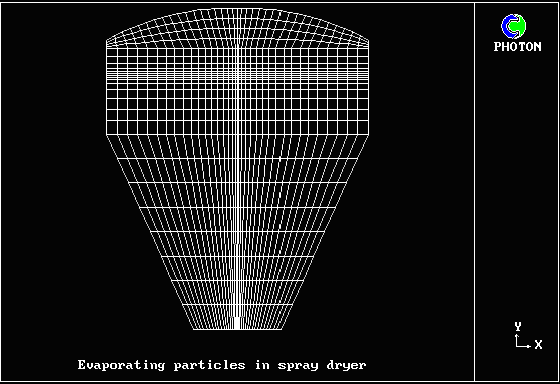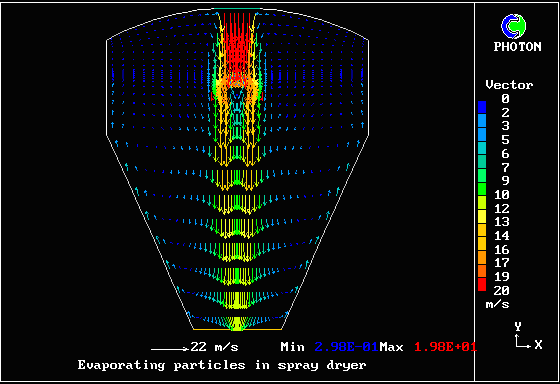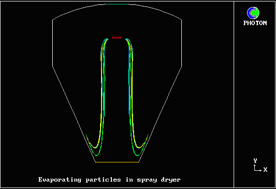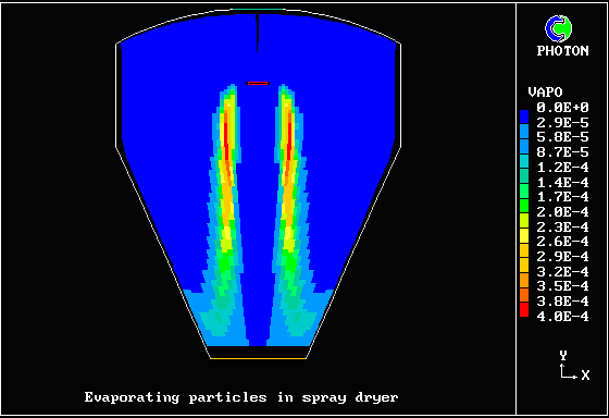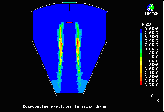 内容 : 中心軸上に蒸発する粒子を含むに高温ガスが下向きに流入する。PHOENICSのGENTRAオプションを使用して粒子挙動を計算した。