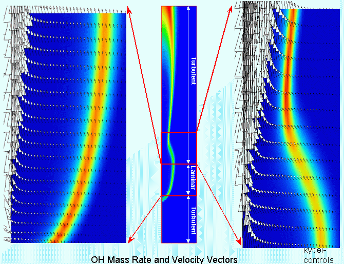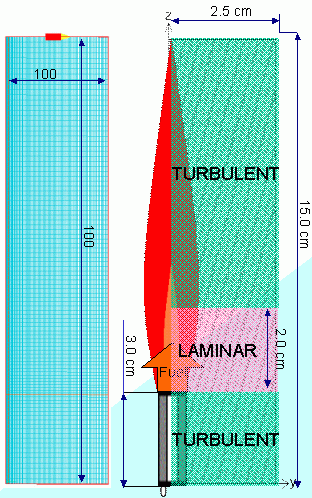 まとめ ・層流解析ではくびれ現象も浮き上がり現象も観察されない。 ・乱流解析では、層流解析と比べて中心軸方向、周方向への速度が増加する。また、浮き上がり現象が観察される。 ・層流と乱流の混合解析では、くびれ現象が観察される。乱流領域では中心軸方向へ向かう速度が増加し、くびれを生じさせている。