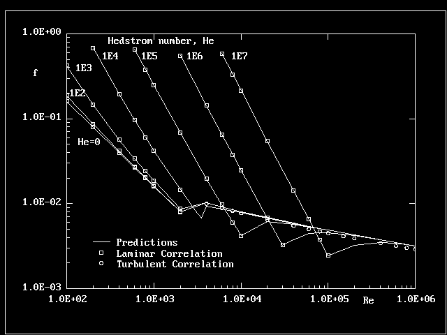 摩擦係数 f、 ビンガムレイノルズ数 Re=rho*Wb*D/K、Hedstrom数 H=Y*Re、 Yield数Y=Tauy*D/(K*Wb)、