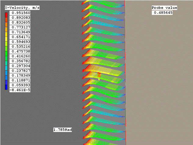 Figure 3.ホイール回転中(Ω:1.785rad/s)のギャップ内フローパターン