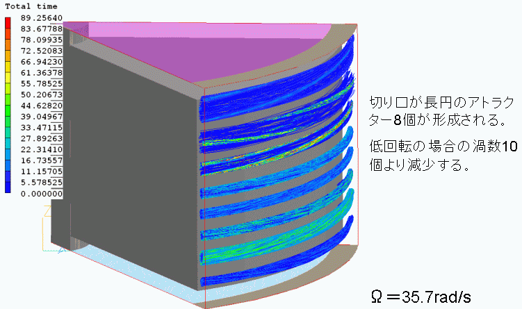 Figure 4.高速回転中(Ω:35.7rad/s)のフローパターン