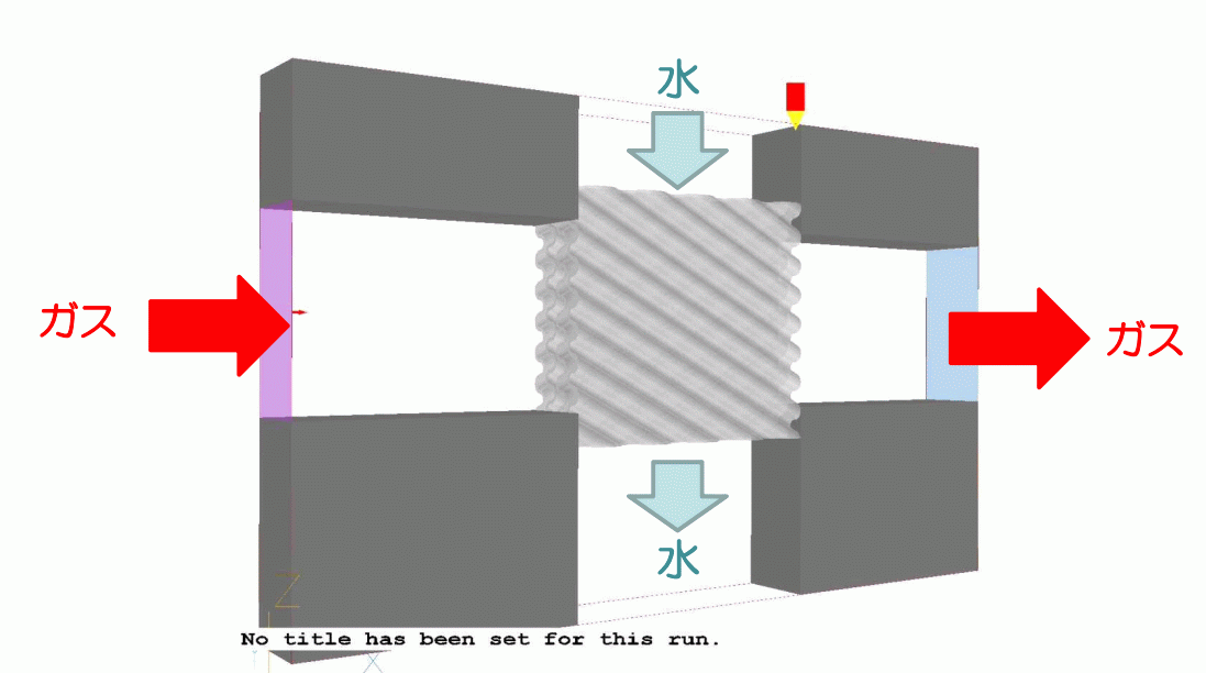 計算結果から見るとショートパス(ガス流れと水流れと垂直方向)が発生するため、