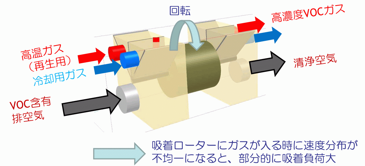 2.3 VOC吸着ロータ装置内の気体拡散(速度分布)
