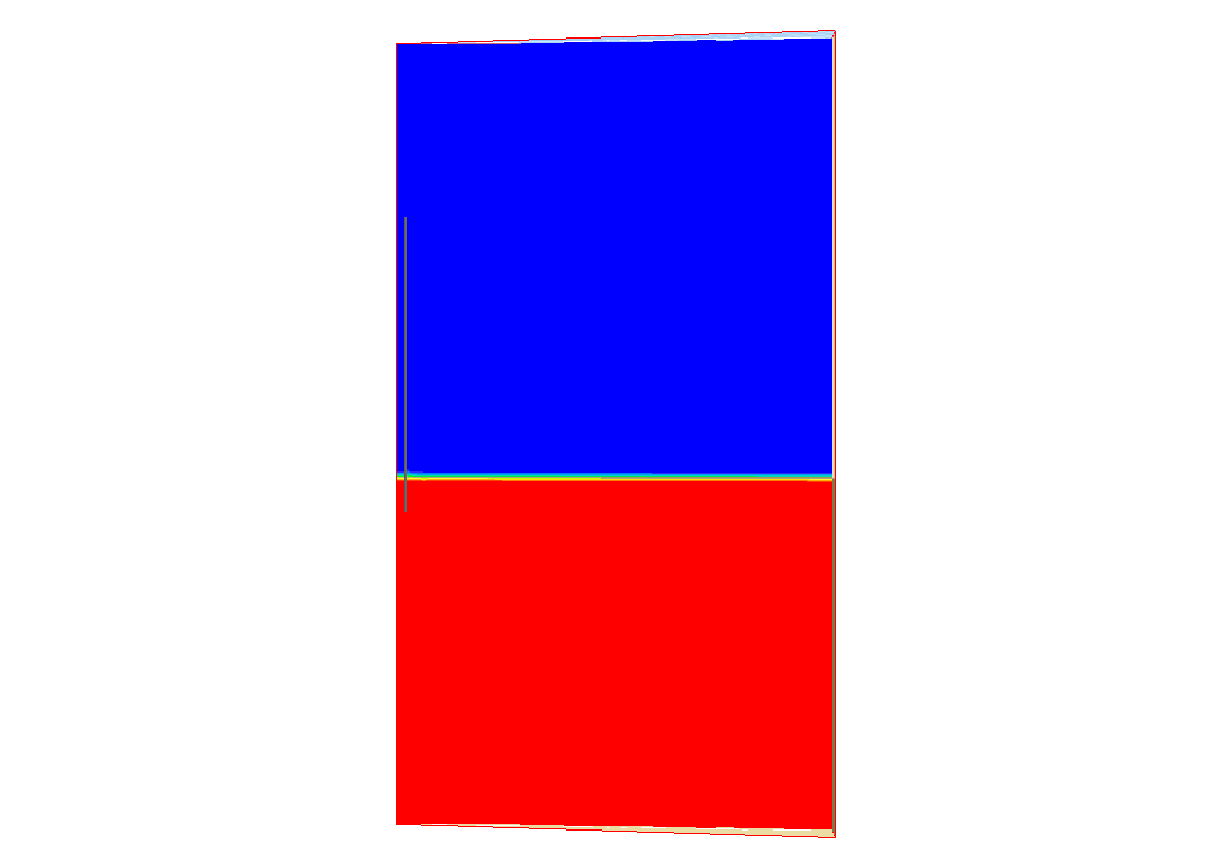 静止状態の液体に毛細管を入れた場合液体の表面張力と重力の釣り合いから毛細管内に液体が上昇する計算。計算は2次元軸対称モデルを使用して円筒座標系用にカスタマイズした表面張力モデルを組み込み計算した。